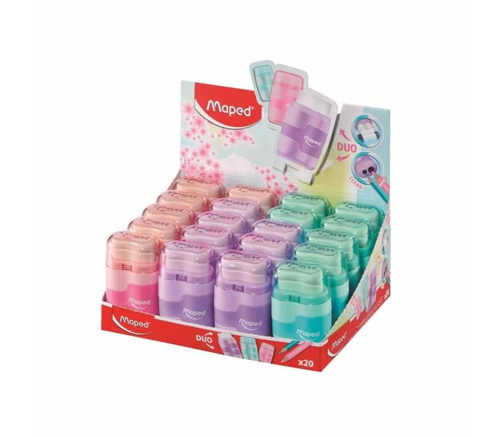 Γόμα και Ξύστρα Διπλή Maped Connect Τετράγωνη Παστέλ / 049231