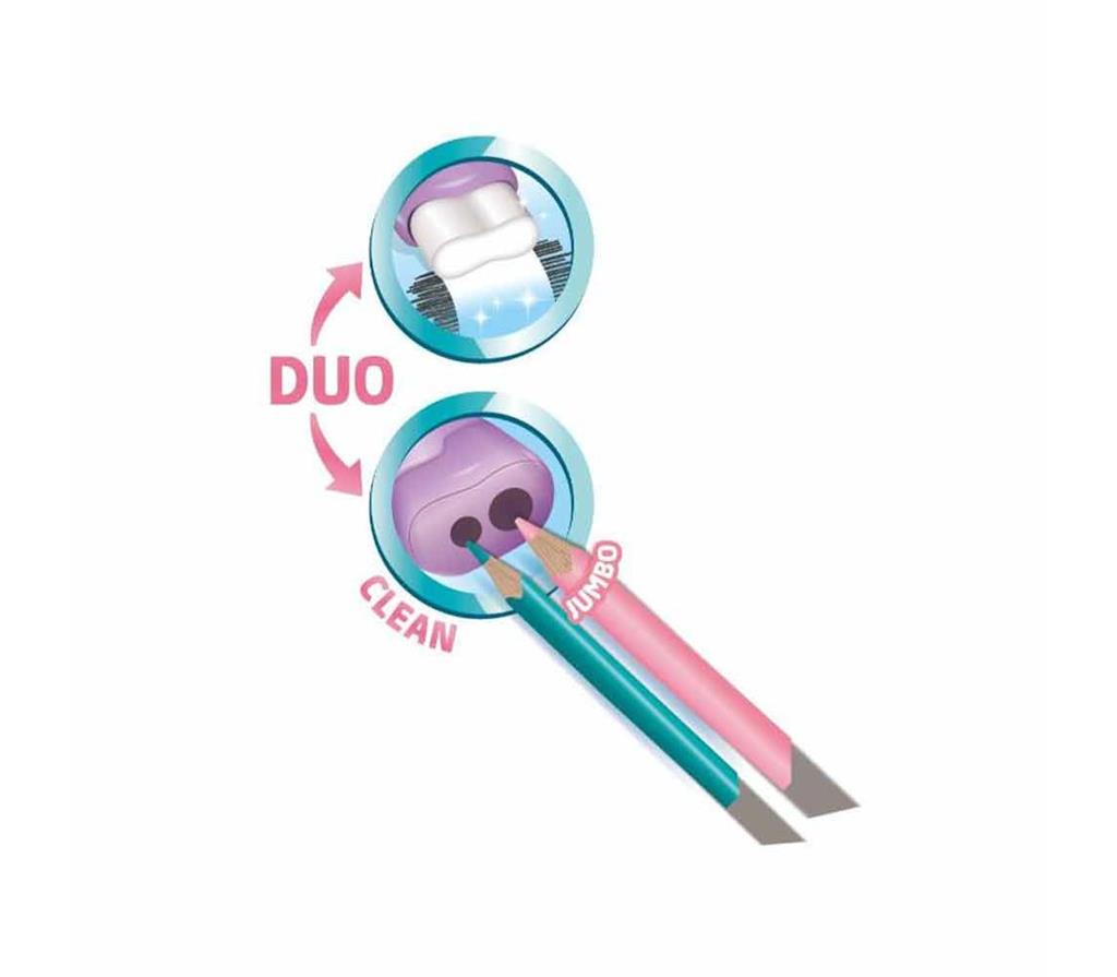 Ξύστρα διπλή και γόμα με καπάκι της Maped, κατάλληλη για μολύβια και ξυλομπογιές.