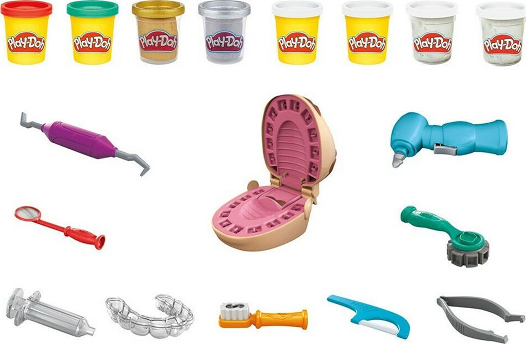 Το σετ οδοντιατρικής, που περιλαμβάνει 10 οδοντιατρικά εργαλεία και 8 δοχεία με μη τοξικό πλαστοζυμαράκι Play-Doh, προσφέρεται για εξαιρετικές δραστηριότητες ή για δώρο για παιδιά ηλικίας 3 ετών και άνω!