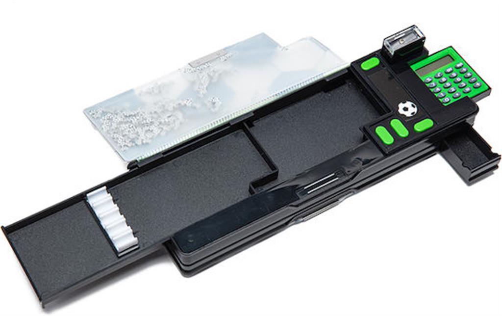 Τα παιδιά πατούν τα κουμπιά και ανακαλύπτουν το κομπιουτεράκι, μυστικές θήκες, μία ξύστρα και πολλά άλλα.