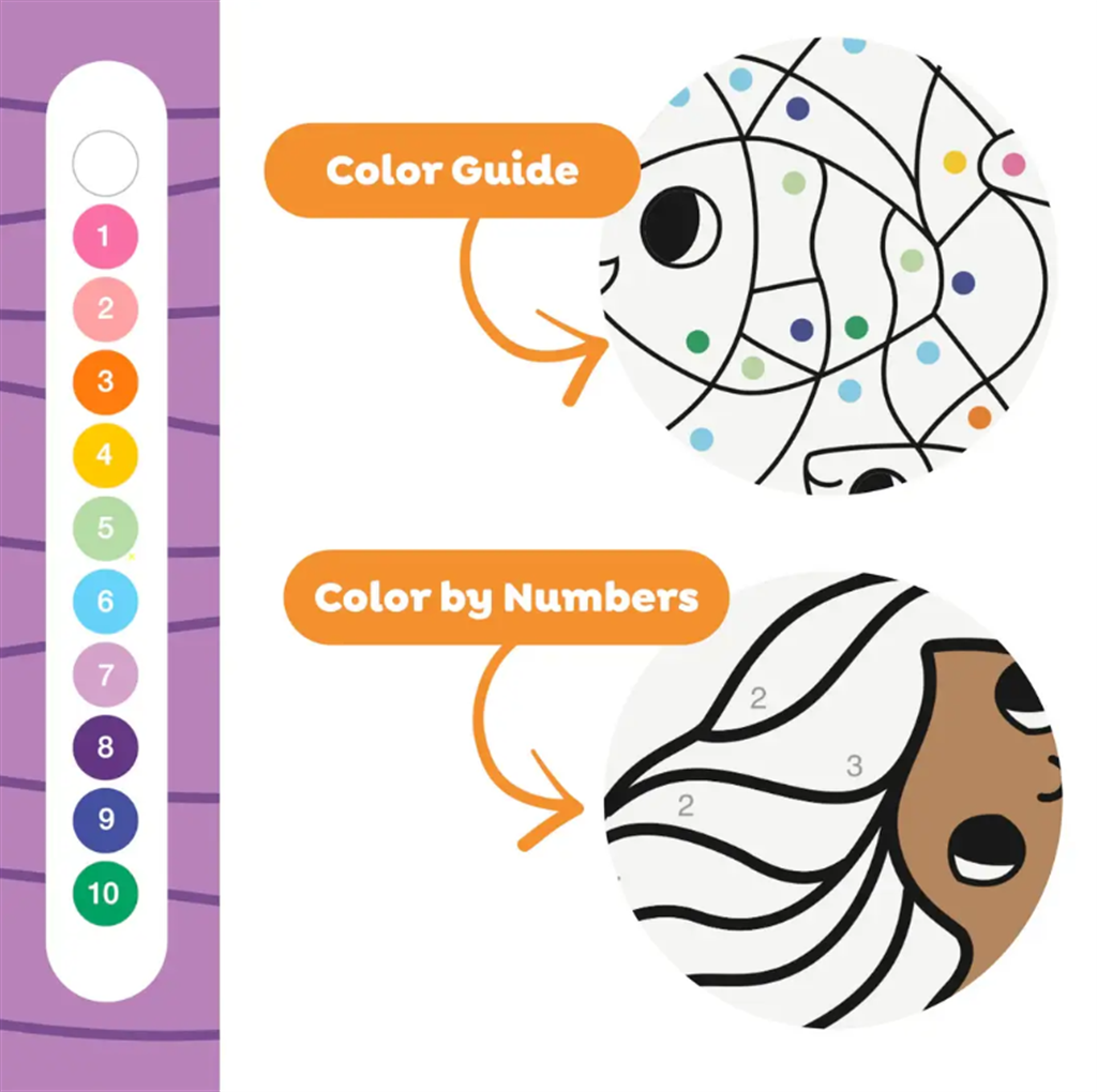 Ένα σετ δραστηριοτήτων για μικρούς δημιουργούς που επιθυμούν να καλλιεργήσουν καλλιτεχνικές και αριθμητικές δεξιότητές. Ακολουθήστε τις κουκίδες με τα χρώματα ή τους αριθμούς και χρωματίστε τις σελίδες με τις εικόνες. Τα παιδιά μαθαίνουν τους αριθμούς από το 1 έως το 10 και τα χρώματα με τον πιο διασκεδαστικό τρόπο!