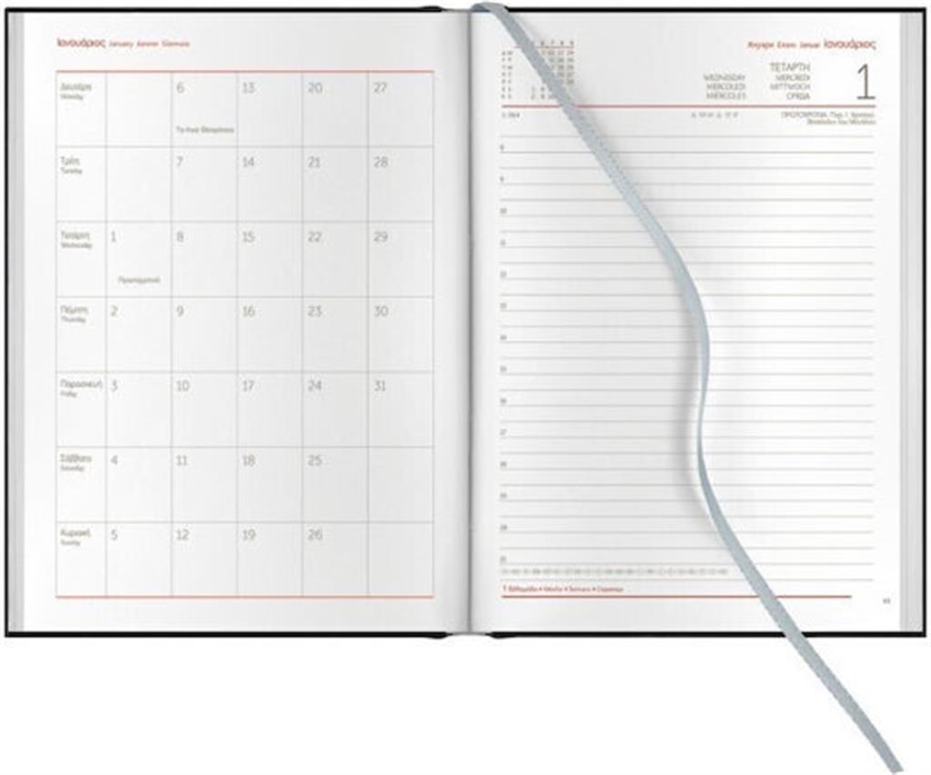 Mοντέρνο κάλυμμα Woodline με το μοτίβο του ξύλου σε μία έκδοση ημερολογίου. Με Penloop στο μεγάλο και μεσαίο ημερήσιο.