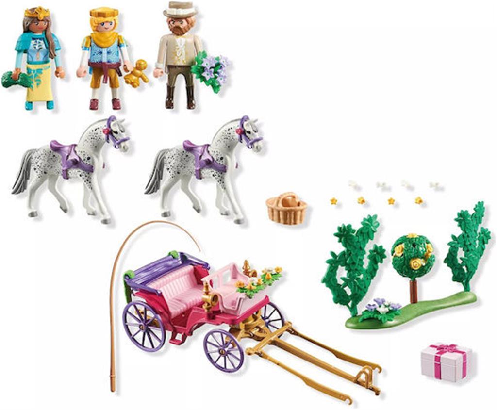 Ξεκινήστε ένα μαγευτικό ταξίδι με το σετ PLAYMOBIL Βόλτα με την πριγκιπική άμαξα! Δύο κομψά άλογα οδηγούν την άμαξα,