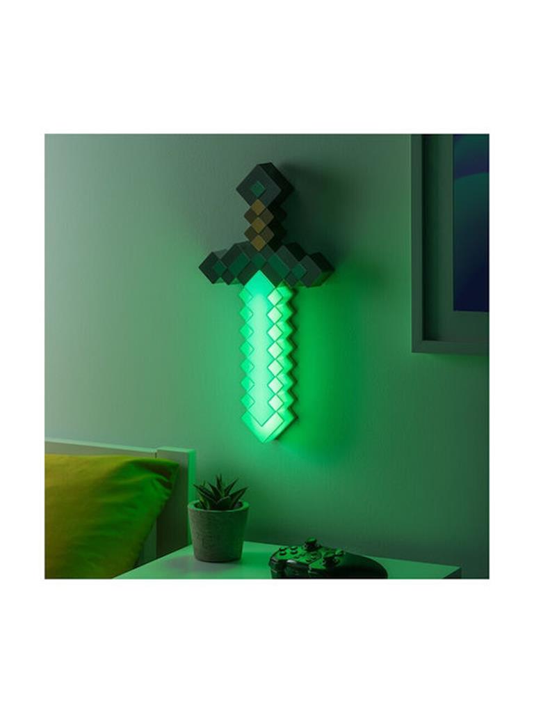 Φωτιστικό 3D σε σχήμα διαμαντένιου σπαθιού από το Minecraft. Στο παιχνίδι, το σπαθί χρησιμοποιείται ως μεσαίο όπλο και είναι αποτελεσματικό για την απομάκρυνση ιστών αράχνης.