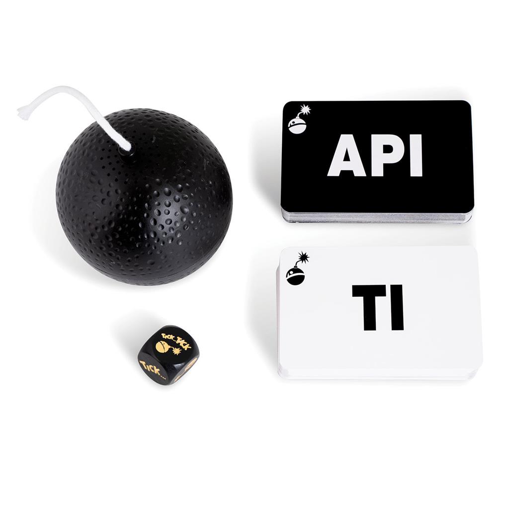 Το επιτραπέζιο παιχνίδι λέξεων που θα σου ανατινάξει το μυαλό! Ρίξε το ζάρι για να δεις σε ποιο σημείο της λέξης πρέπει να χρησιμοποιηθούν τα γράμματα της κάρτας. Ενεργοποίησε τη βόμβα, τράβηξε μία κάρτα και σκέψου γρήγορα μία λέξη που να περιέχει όλα τα γράμματά της, λαμβάνοντας υπόψη τον κανόνα που όρισε το ζάρι. Δώσε τη βόμβα στον επόμενο παίκτη, ο οποίος θα πρέπει να βρει μία διαφορετική λέξη με τα ίδια όμως γράμματα. Ξεφορτώσου τη βόμβα πριν σκάσει στα χέρια σου! Προσοχή: Ο χρόνος ανατίναξης είναι τυχαίος και έτσι η βόμβα μπορεί να εκραγεί ανά πάσα στιγμή! Ακόμα και οι πιο εύγλωττοι θα μπερδέψουν τα λόγια τους!